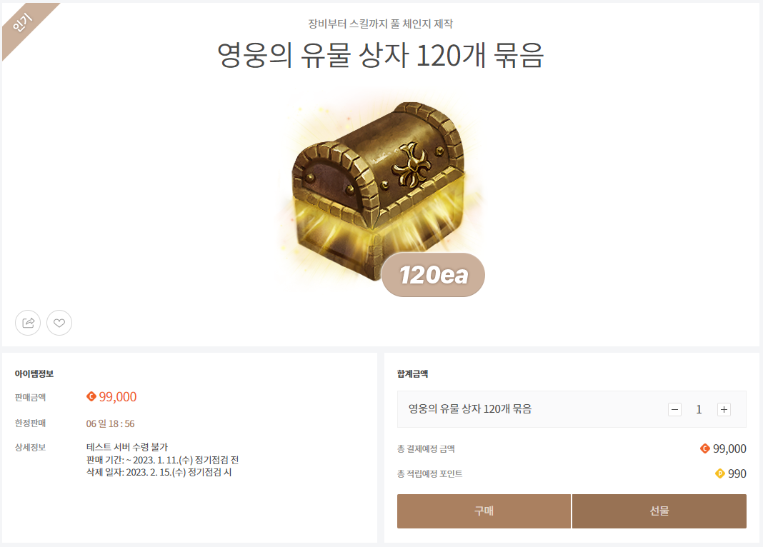 유물 상자는 현재 n샵에서 120개 묶음 9만 9천원으로 판매 중이니 필요하신 분들은 구매하시면 좋겠습니다.