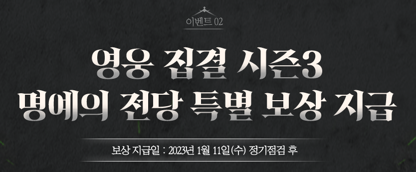 다음으로 영웅 집결 시즌3 명예의 전단 특별 보상지급에 대한 안내입니다.