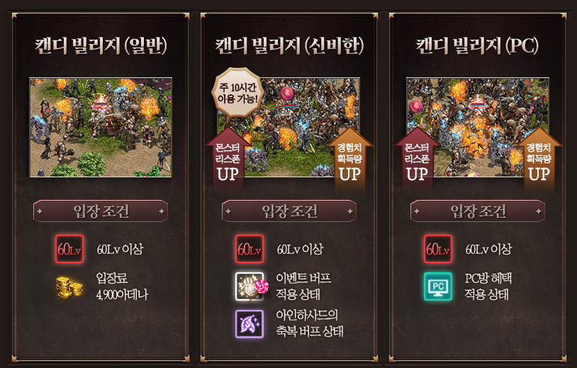 이벤트 상인을 통해 화이트 데이 캔드(입장권, 20만 아덴) 구매 후, 사탕 마법 막대(시간 별 상이)를 구매하여 조건에 맞게 입장하시면 됩니다.