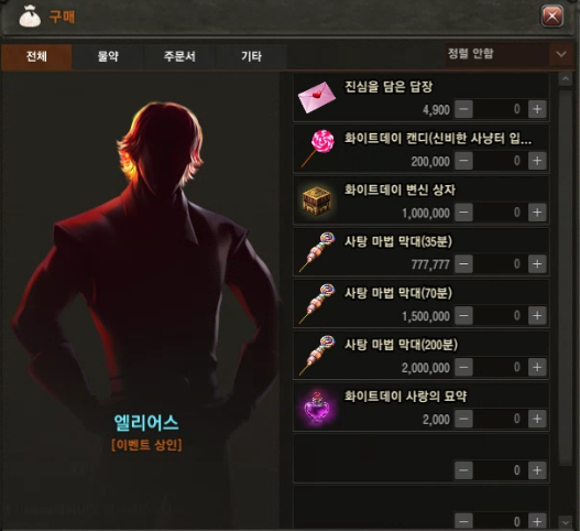 이 때 화이트데이 변신상자와 사랑의 묘약을 구매하면 랭커 변신 및 2단 가속 버프를 제공받을 수 있어 이벤트 사냥터에서 사냥이 수월해 집니다.