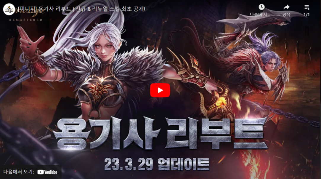그리고 이제 내일이면 용기사 리부트를 앞두고 있습니다.