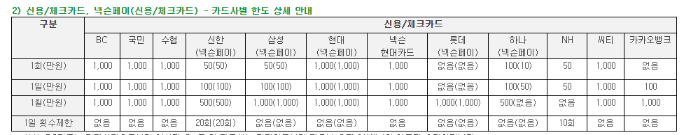 신용카드 한도액에 놀라 혹시나 다른 게임사들은 어떤가 싶어 찾아 보니 다른 N사의 경우도 비슷하네요.