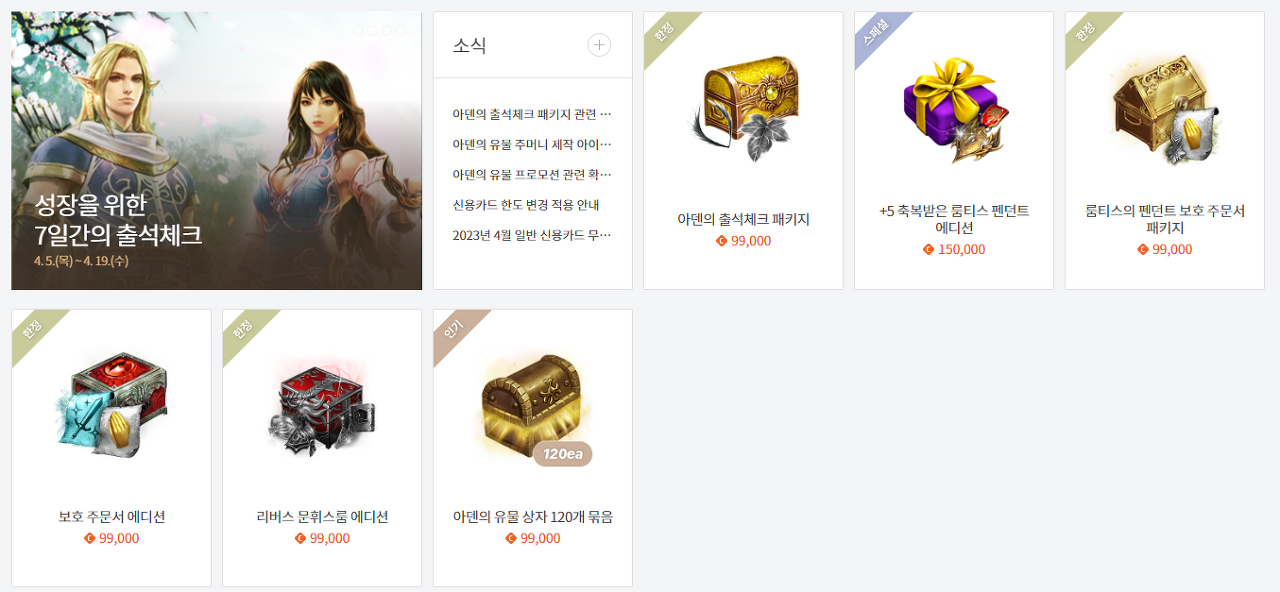 다양한 시즌 별 패키지가 나오더라도 금액은 딱 9만 9천원이었습니다.