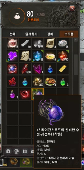 위의 이미지에서 처럼 +7이상되어야만 쓸만합니다. +6이하의 수정구는 갑옷마법주문서로 확률 강화가 가능합니다.