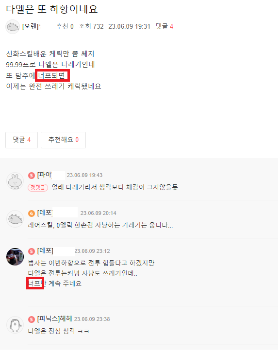 리니지 커뮤니티에는 개선이라는 단어 대신 너프라는 단어가 사용됩니다.