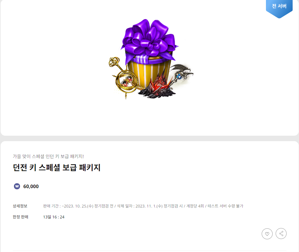 던전키 스페셜 보급 패키지의 가격은 6만원입니다.