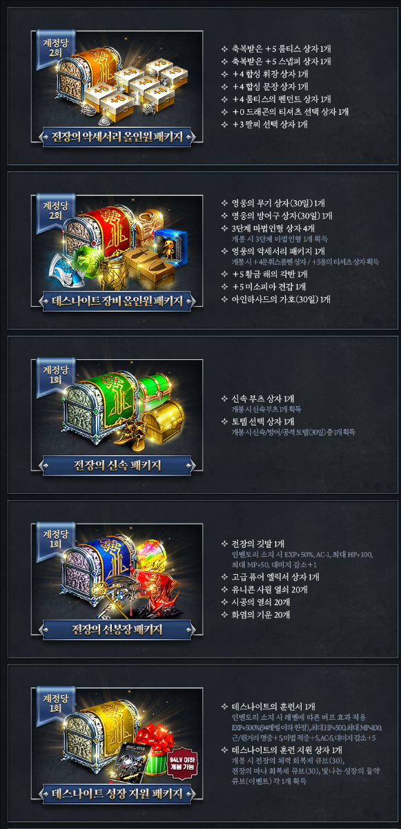 참고로 전장의 악세사리 올인원 패키지에는 +0 안타라스/파푸리온/린드비오르/발라카스의 티셔츠 중 선택하여 1개 획득 가능 합니다.
