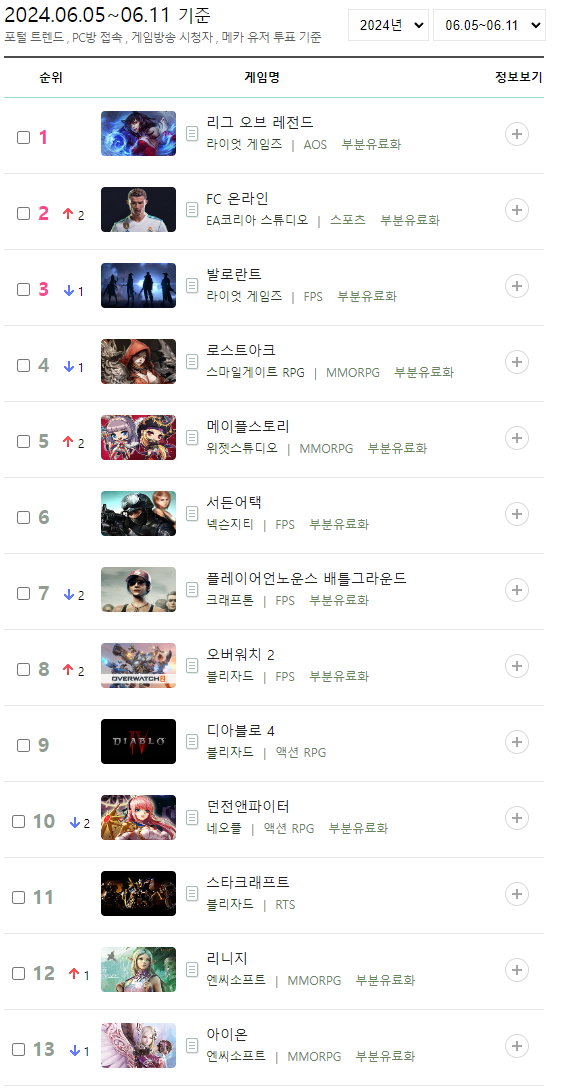 리니지가 아무리 한물 간 게임이라고 해도 게임 순위에서는 여전히 상위에 랭크 되어 있고