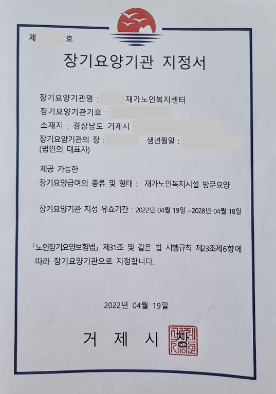 경상남도 거제시 방문요양 사업계획서 제출, 장기요양기관 지정심사 통과 완료