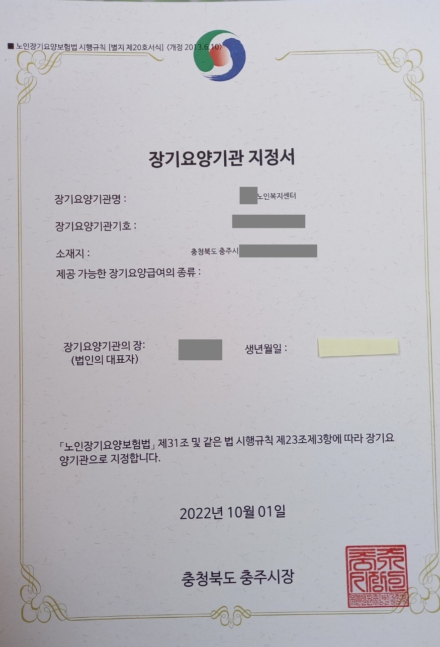 충청북도 충주시 방문요양 재가노인복지시설 사업계획서 제출 및 장기요양기관 지정심사 완료