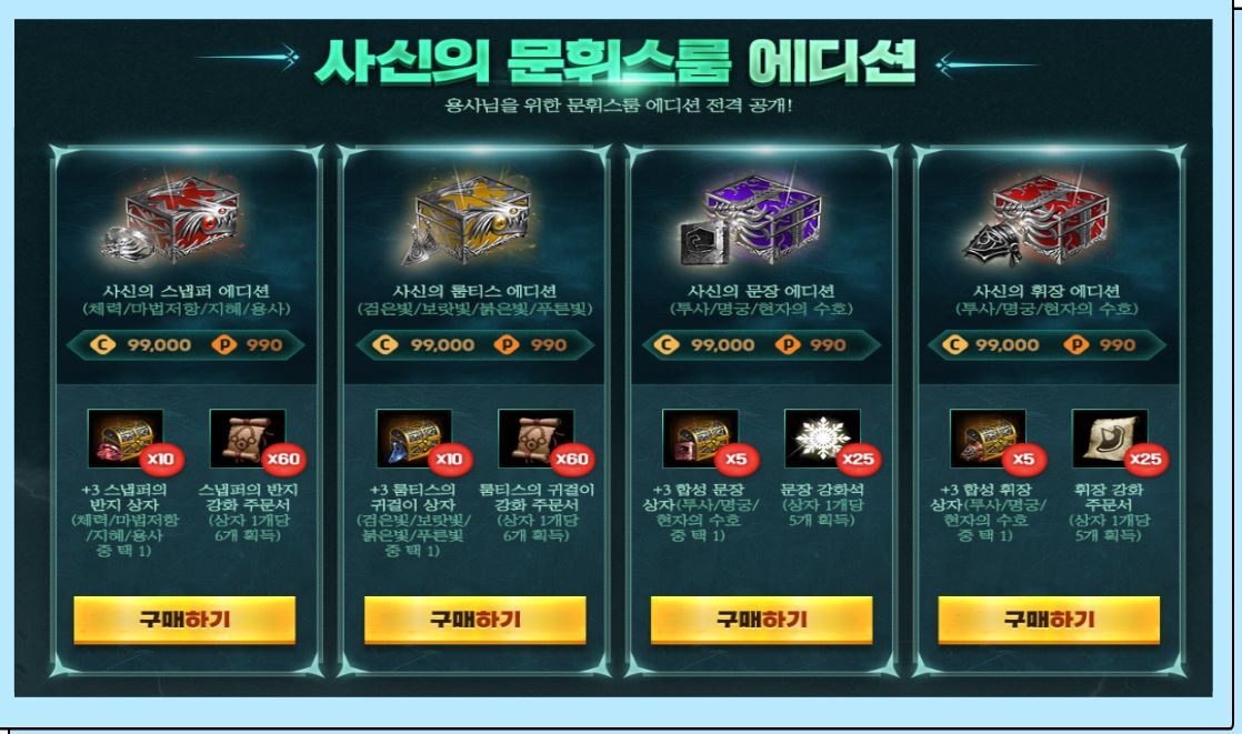 그리고 펜던트 외에도 문휘스룸을 보호주문서를 통해 중첩 강화도 이벤트 기간 동안 가능합니다.
