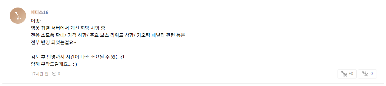 제가 올린 칼럼에 메티스님께서 직접 댓글을 남겨 주셨네요.