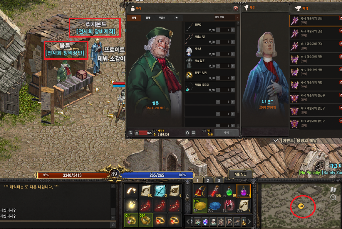 기란 마을 여관 위 11시 방향으로 볼튼과 리치몬드가 전시회 장비를 판매 및 제작하는 기능이 추가되었습니다.